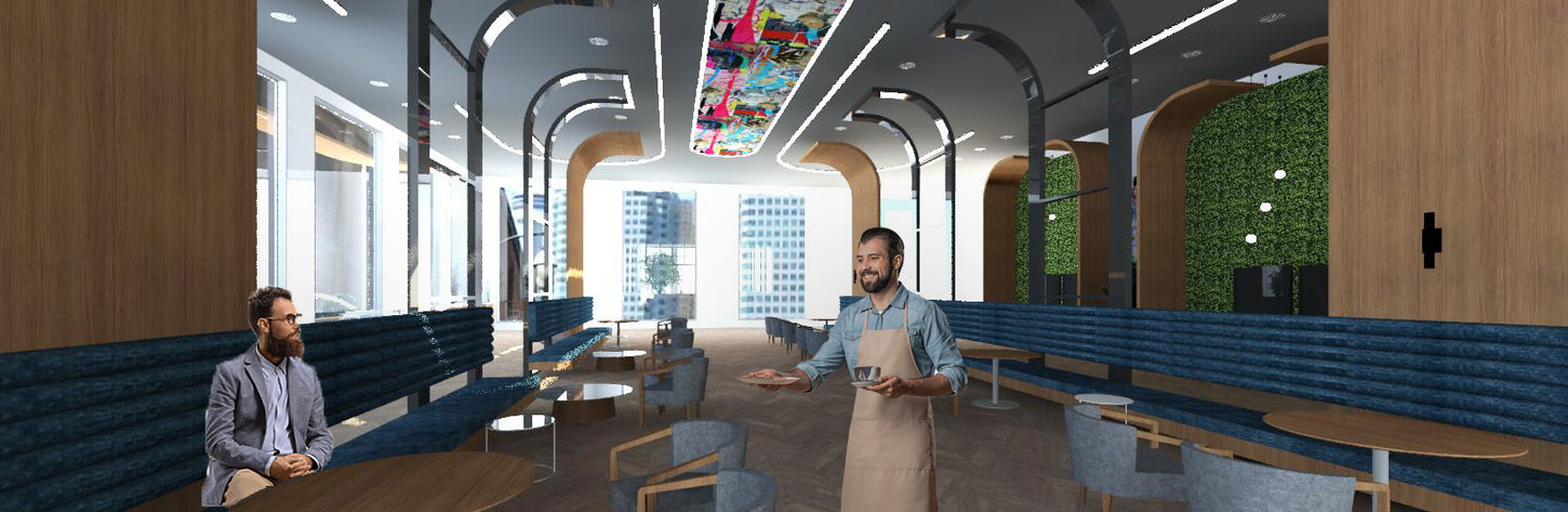 This personal project completed over the 2021 summer was aimed to design an environment that aids to promoting community in the urban city. In light of covid-19, I was inspired to create a project that worked towards shifting the streets to be more useable and connected. While also designing a space that contributes to creating a healthier city through the application of biophilia. “The Community” is a mixed-use space designed for social interaction and connection within the urban city. Zones include areas to work, play, and connect. Designed to be a café/lounge during the day, as well as an event space for community gatherings.